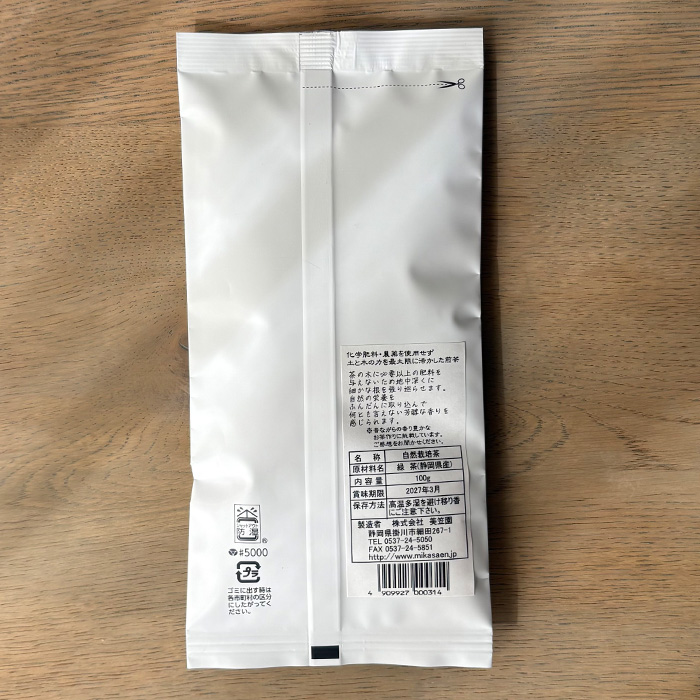 「自然栽培茶100g」深蒸し掛川茶 化学肥料・農薬不使用 美笠園